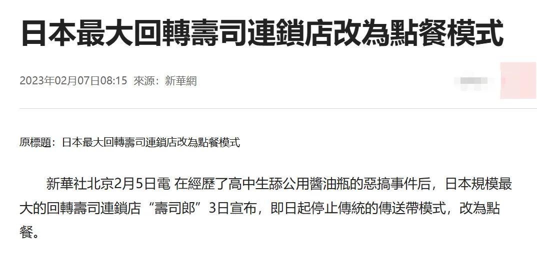 同樣是在2023年,一名高中生在日本的壽司郎店內舔公用醬油瓶、並用沾口水的手指污染過路壽司,視頻傳至社交媒體引發輿論譁然。
