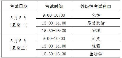 5月等級性考試設思想政治、歷史、地理、物理、化學、生物學6門科目。考生可根據高校招生要求和自身興趣特長,在6門等級性考試科目中自主選擇3門參加考試。合格性考試成績合格的高三在校生,可直接選擇相應科目的等級性考試進行報考。