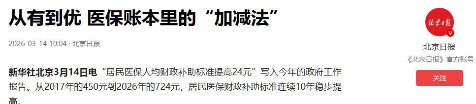 從有到優 醫保賬本里的“加減法”.2026-03-14 10:04·北京日報.