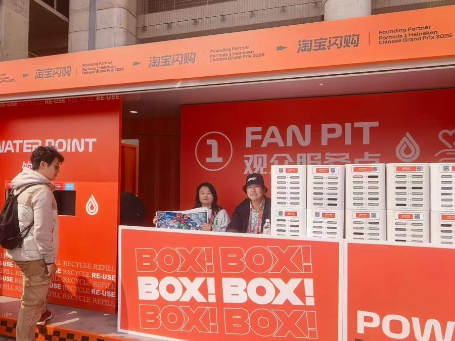 賽事期間綜合服務點意外走紅,成爲車迷必打卡拍照的地方。這源於賽事公司國際事務和研究拓展部黨員提議,在現場標識中更多結合f1“熱梗”,讓服務更有溫度,團隊緊急加制並在服務點貼出冷熱水標籤(must be cold water、hot water),被f1官方ins和國內社交媒體廣泛轉發,車迷們紛紛點贊“飲水點有心了”。