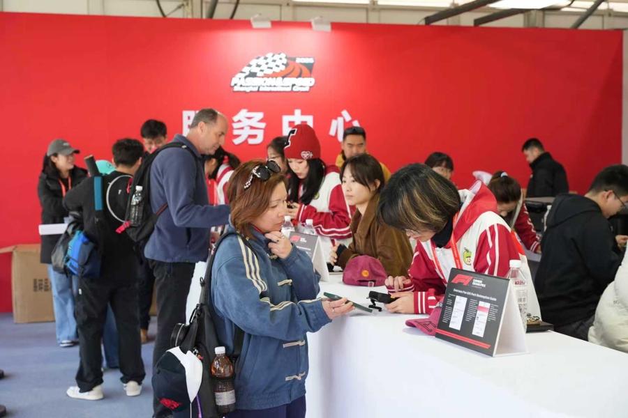 “我們的目標是讓觀衆可以玩一天。”俞逸清舉例:過去,商貿區主要集中在主看臺,人流擁擠不堪。今年,這片區域延伸到了B、E、H、K看臺,展車、獎盃陳列與互動遊戲相結合,空間上的釋放帶來了消費潛力的激增。又比如,在水景廣場,不再僅僅是通往看臺的過道,而是一個沒有門票也能進來感受氣氛的“賽車主題公園”。巨大的屏幕前,人們席地而坐,享受着陽光與競速;F1官方商店(F1store)和賽事官方紀念品商店前人頭攢動,哪怕不進看臺,也能把這份速度與激情打包帶回家。