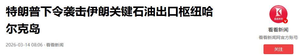 特朗普下令襲擊伊朗關鍵石油出口樞紐哈爾克島.2026-03-14 08:06·看看新聞.