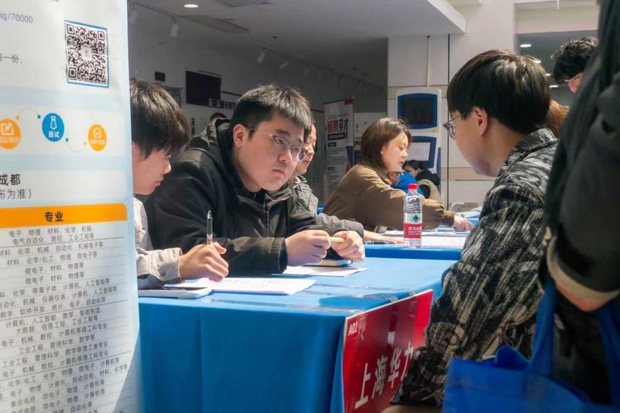 招聘會現場氣氛熱烈,企業展位前諮詢隊伍絡繹不絕。本次招聘會參會企業覆蓋集成電路、民用航空、能源裝備、智能製造等領域,既有上海電氣、上海華力、上海航天控制工程研究所等國有重點企事業單位,也有能量奇點、睿昇半導體等專精特新“小巨人”企業,其中來自臨港新片區的企業佔比達35%。上海航空發動機複合材料有限責任公司、上海臨科智華數字科技有限公司、中國科學院微小衛星創新研究院、上海邦芯半導體科技有限公司等一批紮根臨港的企業備受畢業生青睞。