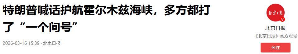 白宮打得算盤很精:霍爾木茲海峽是全球能源命脈,只要控制住這裏,就能遏制伊朗的經濟,還能讓盟友們一起分擔風險,自己不用再孤軍奮戰。