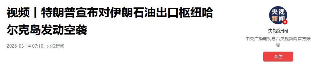 特朗普下令“猛烈空襲”伊朗哈爾克島,背後藏着更大警告.2026-03-14 10:50·京報網.
