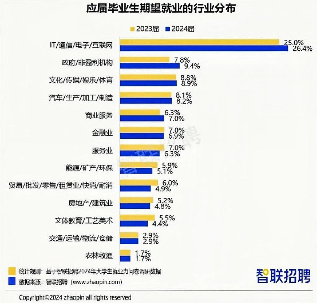 智聯招聘針對2024屆畢業生的調查,直觀反映了這一代年輕人的擇業期望和偏好。