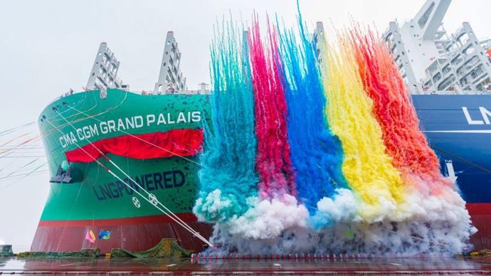 3月17日,由中船集團旗下滬東中華造船(集團)有限公司建造的全球最大24000TEU級液化天然氣(LNG)雙燃料動力集裝箱船“達飛 巴黎大皇宮”號,提前7個半月在上海長興島命名交付。這是滬東中華爲法國達飛集團建造的第20艘大型集裝箱船,將投入地中海航線運營,爲全球貿易暢通注入新動能,爲航運可持續發展貢獻新力量。