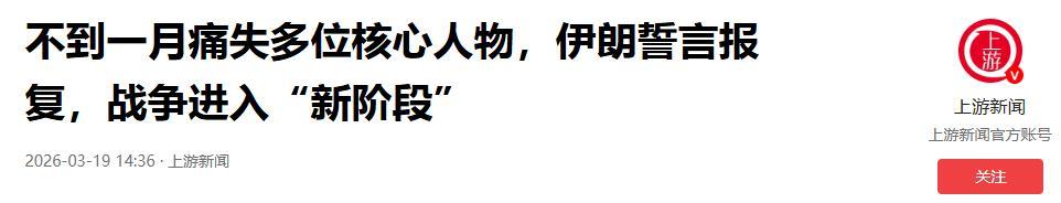 不到一月痛失多位核心人物,伊朗誓言報復,戰爭進入“新階段”.2026-03-19 14:36·上游新聞.