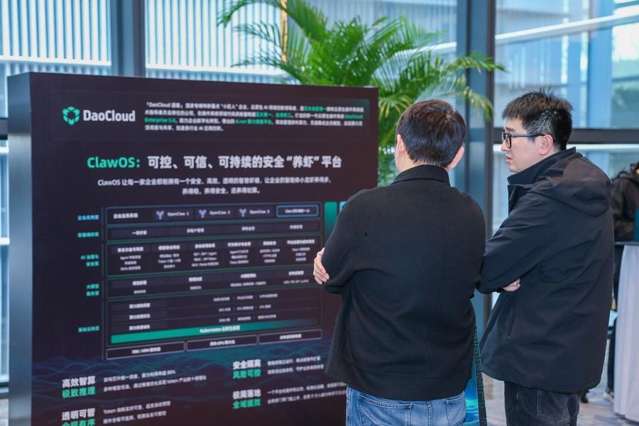 DaoCloud道客推出的ClawOS,號稱是專爲企業打造的“智慧蝦塘”,助力“養得多、養得穩、養得安全、養得划算”。CEO陳齊彥介紹,ClawOS內置Token管家,芯片任選,模型隨心,據測算算力利用率提升80%,推理成本直降30%-50%,花同樣成本可以養更多蝦。