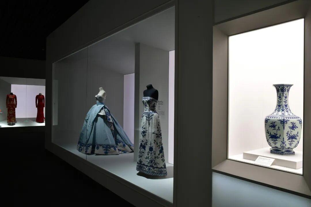 展覽第三單元“百變霓裳”將視野投向全球。這部分呈現的不是簡單的“影響-接受”關係,而是一場繼續延續百年的跨文化對話。在“復古新樣的民族風”展區,展覽刻意模糊“中國風”與“東方元素”的邊界。時尚界對於設計元素也同樣一如既往對“東方”概念進行新一輪解構和再創作,並融合出一種國際視野下更廣闊的“東方美學共同體”,即挑選各種來自亞洲的、看起來有“東方味兒”的元素融合起來,創造出一種西方人眼中模糊而廣泛的“東方感覺”,對於西方世界來說,既新鮮又神祕,有一種別樣的吸引力。這種帶着濃厚異域情調的設計,就成爲了國際舞臺上的一種新潮流。