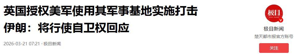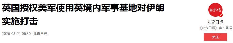 英國授權美軍使用英境內軍事基地對伊朗實施打擊.2026-03-21 06:30·北京日報.