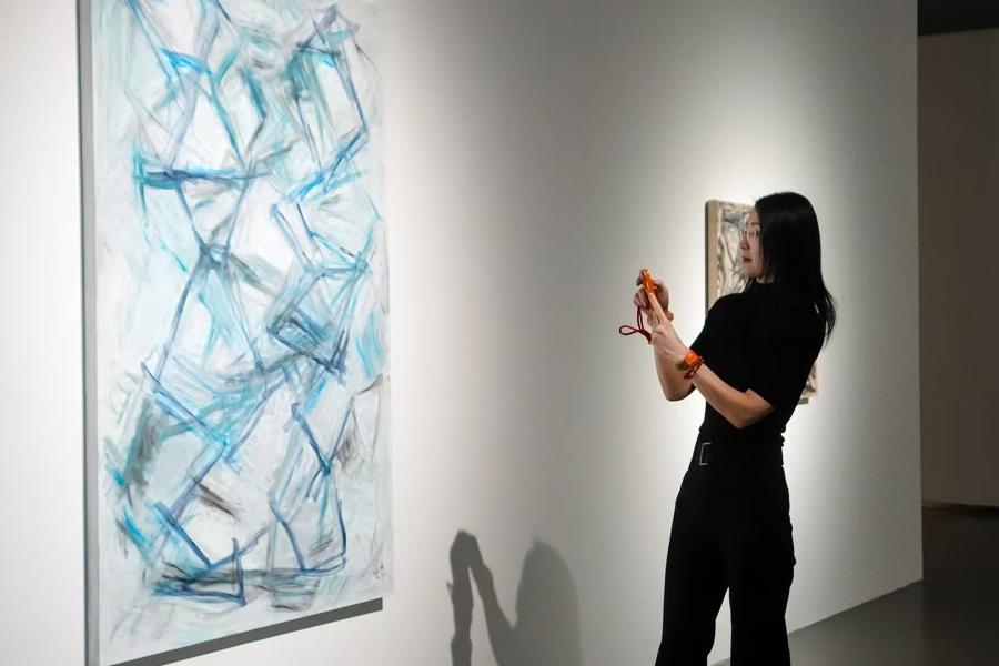 策展人王鈺告訴記者,展覽名爲“又見”,就是想表達藝術家“以關照之心,重識世界與自我”。“重識”的旅程,以觀象、觀境、觀心、觀淨、觀無五個板塊逐層展開,由內向外,由實入虛,呈現了藝術家豐盈的精神世界和多元的藝術探索。
