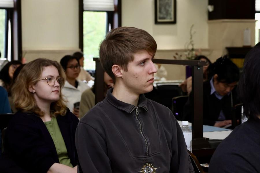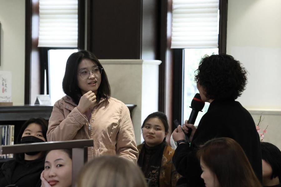 當天,來自上海應用技術大學的殷召榮老師攜其中英雙語茶文化科普作品《一杯中國茶:一片葉子的奇遇》一書,與復旦大學國際文化交流學院來自英國、俄羅斯、哈薩克斯坦、澳大利亞、泰國、印尼、委內瑞拉、馬來西亞、蒙古、越南等十餘個國家學子相約“小故宮”,沉浸式感受中國茶文化的千年底蘊與獨特魅力,以茶爲媒,搭建起中外文明交流的暖心橋樑。
