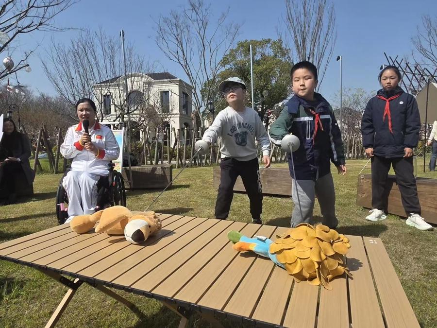 輪椅上的姚芳,則用自己的人生詮釋了另一種“破繭成蝶”。面對身體殘缺帶來的困境,她沒有退縮,而是拿起擊劍,一次次跌倒、一次次站起,最終站上全國殘疾人擊劍比賽的最高領獎臺。“你們也可以,只要不放棄。”她的話簡短有力,卻在孩子們心中激起漣漪。一個小男孩聽得入了神,握緊拳頭,彷彿自己也在賽場上。