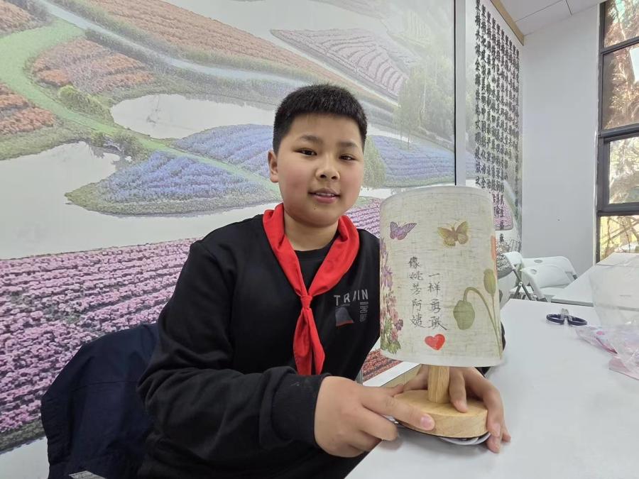 宣講帶來的感動還在心頭湧動,一場“花間拾光·手作檯燈”親子手工課便接續展開。孩子們一邊回味着剛纔的故事,一邊把心中的觸動一點點揉進手作裏。有位小姑娘在燈罩上畫了一朵小花,旁邊歪歪扭扭寫着“像姚芳阿姨一樣勇敢”她說,要把這盞燈放在牀頭,每當害怕的時候就打開,提醒自己“不放棄”。旁邊的小男孩則把燈罩塗成了一顆紅色愛心,認真地說:“這是無私的愛的顏色,也是血液的顏色,是給別人帶去希望的顏色。”當一盞盞檯燈次第亮起,溫暖的光芒映照着每一張笑臉,也照亮了孩子們心裏剛剛被榜樣點亮的那個角落。