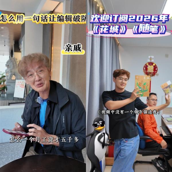 當有同行在朋友圈裏說我們半個月前在花城出版社視頻號發的《怎麼用一句話讓編輯破防》已經火爆出圈的時候,我們還僅僅以爲我們的視頻號是在省內拓寬了新媒體受衆。直到今年1月的北京訂貨會上拍攝逛展視頻的過程中被全國各地的同行認出來,我們才後知後覺發現原來這些抽象無厘頭的視頻影響力超出了想象。
