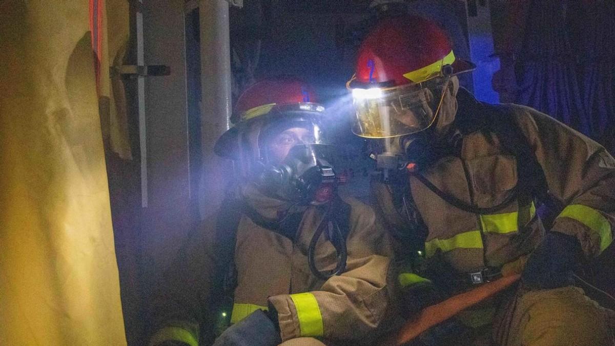 自動滅火系統罷工、智能電控失靈,有的地方連備用電源都找不到,最後只能靠水兵扛着滅火器硬衝。