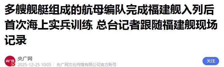 2025年12月入列後,福建艦就和延安艦、通遼艦等組成編隊,完成了首次海上實兵訓練。