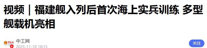視頻|福建艦入列後首次海上實兵訓練 多型艦載機亮相.中工網.2025-11-18 18:15.