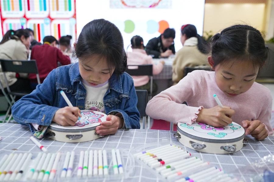 在今年上海市民文化節虹口區城市美育日之際,商場邀請親子家庭走進“飛天小鼓手——敦煌鼓藻井彩繪”活動現場。孩子們在老師的引導下,探尋敦煌壁畫中妙音天女的故事,用畫筆在鼓面填充華麗色彩,讓美育的力量悄然浸潤心田。