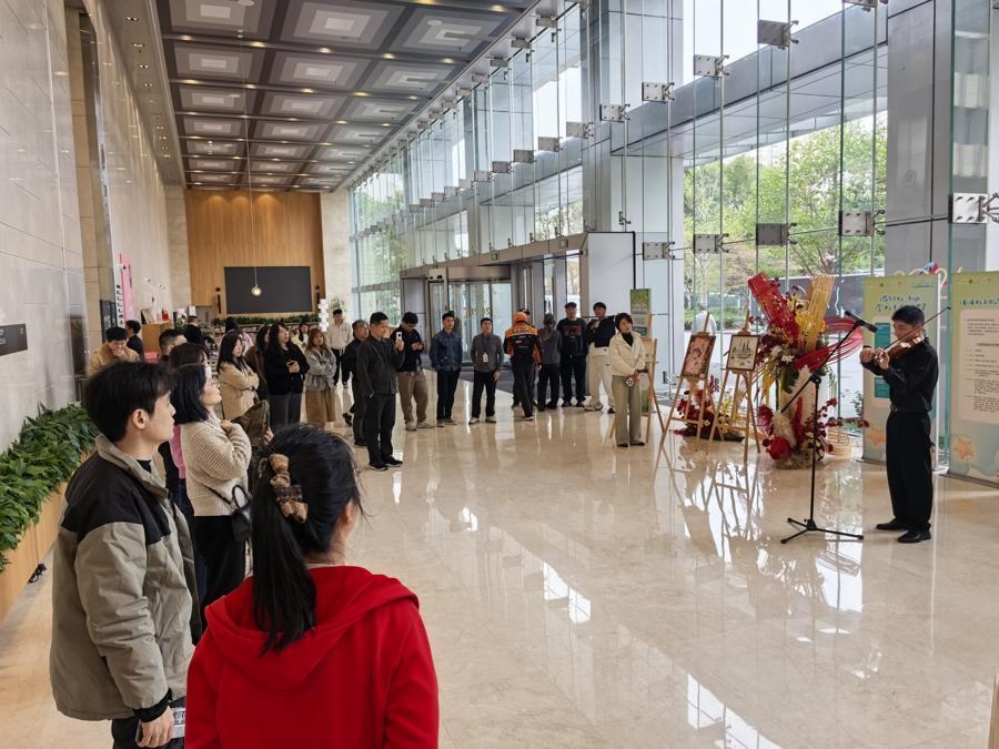 爲進一步擴大社會對孤獨症羣體的持續關注,打浦橋街“星光之家”聯合黃浦區特殊教育職業學校、華師大附屬盧灣輔讀實驗學校,3月26日、29日分別走進中國海國際中心和Luone凱德晶萃廣場開展了“傾聽星聲 看見未來”快閃公益音樂會暨繪畫作品展,得到企業白領和社區居民的暖心支持和熱情肯定,也讓孤獨症羣體的才華與心聲被更多地看見、被聽見,喚起社會各界對孤獨症羣體的理解、關注和支持。