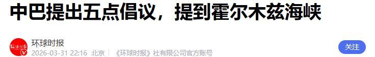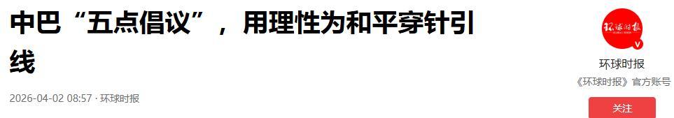 中巴“五點倡議”,用理性爲和平穿針引線.2026-04-02 08:57·環球時報.