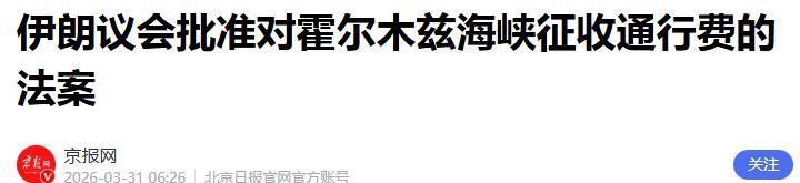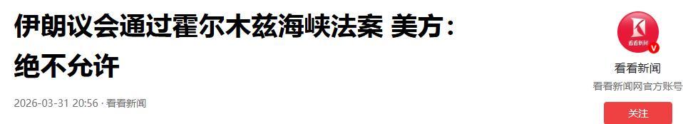 伊朗議會通過霍爾木茲海峽法案 美方:絕不允許。2026-03-31 20:56·看看新聞