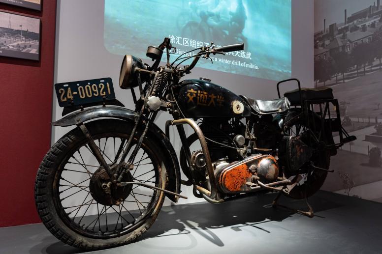 交通大學用於學生體育教育的進口摩托車(1950年代)。該車系英國原產的皇家恩菲爾德牌(ROYAL ENFIELD)摩托車。1955年,爲增強學生體魄,加強體育教育,交大團委成立摩托車訓練班,採購了40多輛世界各國的名牌摩托車,1956年暑假,這批摩托車隨校西遷至西安。2026年交通大學建校130週年、西遷70週年之際,西安交通大學檔案館、博物館將此摩托車捐贈給上海交通大學校史博物館。