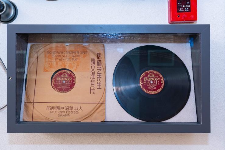交大老校長唐文治先生誦讀國文的黑膠唱片(1948年)。從1907年秋至1920年冬,著名教育家、經學家唐文治擔任交大校長, 他十分重視工文並重,注重中英文教育,特別爲國文教育而躬行實踐,十數年如一日,登上講壇爲全校學生講授古文經典,聲震屋宇,鏗鏘有力,其誦讀文法被譽爲“唐調”。