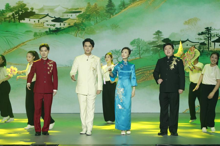開幕式舞臺上,全市滬劇院團大聯合,展現了滬劇藝術薪火相傳的蓬勃生機。序曲《桃源春曉》以江南絲竹與浦東派琵琶爲底色,拉開了整場演出的序幕;青年演員與上海戲劇學院附屬戲曲學校25級滬劇班學員共同演繹的《桃花十里上春山》,唱出了江南春日的無限生機;三代滬劇人聯袂帶來的《碧桃情深》聯唱,用經典愛情選段致敬滬劇非遺20週年;《百花向陽》紅色經典聯唱則集結了國有與民營院團的多位名家新秀,以《江姐》《一號機密》《向五兒》《血染姐妹花》《朵朵紅雲》等耳熟能詳的片段,慶祝中國共產黨成立105週年。