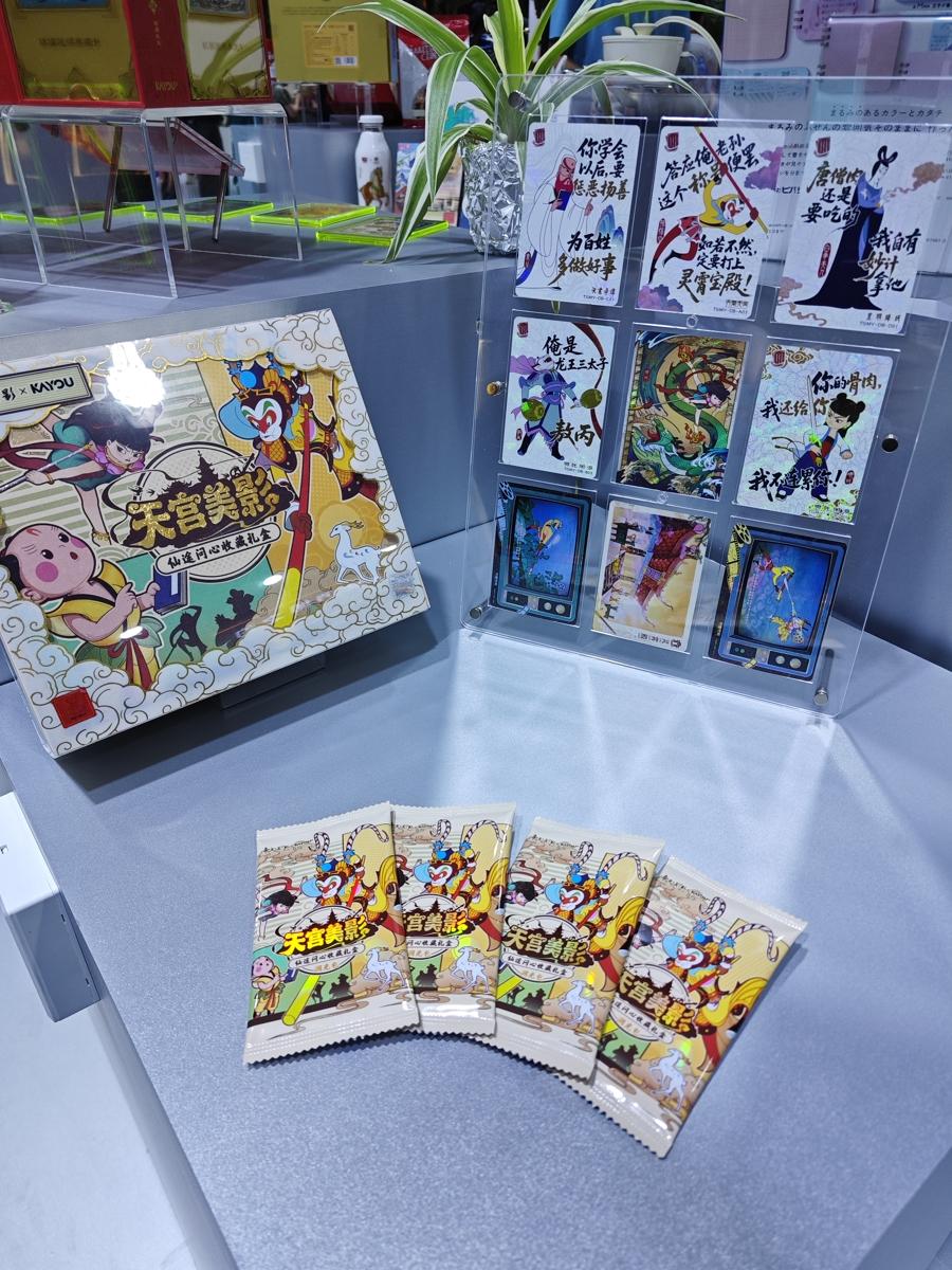 展位上,卡遊與上海美術電影製片廠聯合推出的“浪浪山小妖怪”系列毛絨玩偶同樣吸引了大批參觀者,玩偶將上美影經典動畫角色形象化爲可以擁抱的溫暖陪伴。同期亮相的“天宮美影·仙途問心收藏禮盒”收錄了《大鬧天宮》《哪吒鬧海》《天書奇譚》等經典國民動畫,卡牌設計融入老式電視、膠捲、皮影卡等懷舊元素,讓經典動畫IP以全新形式走進現代生活。
