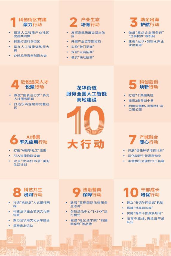爲更好地服務全國人工智能高地建設,龍華街道日前發佈“十大行動”,系統勾勒出從黨建引領到場景落地、從街區煥新到法治保障的全鏈條路徑。