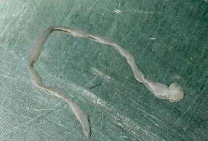 從麗姨腦袋裏抓出來的活蟲,已有約8cm長