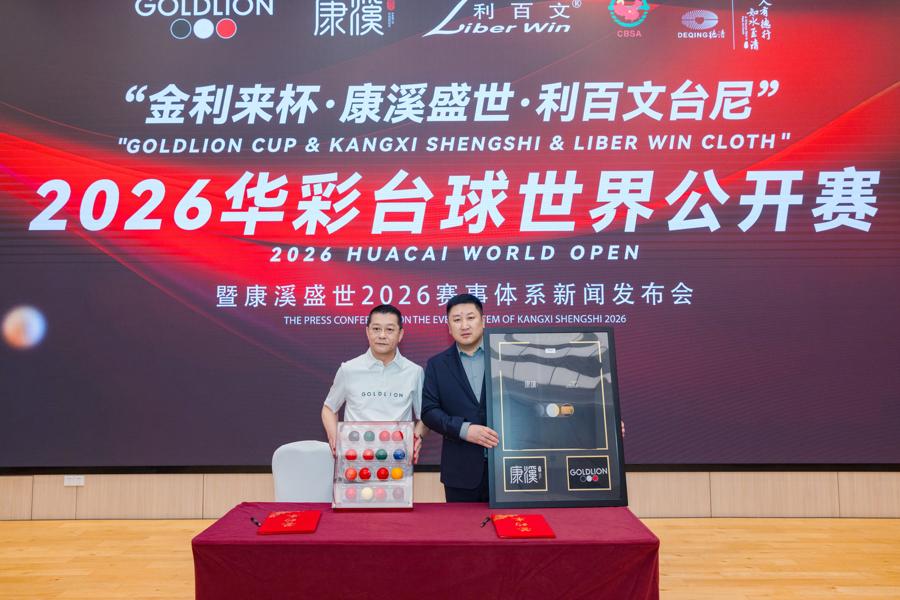 當天,康溪盛世與金利來達成戰略合作,簽署合作協議並推出賽事專屬聯名賽服,雙方攜手推動檯球運動與品牌文化深度融合。中式檯球名將、史上首位200萬冠軍獎金得主張堃鵬正式簽約康溪盛世,進一步強化賽事競技陣容與品牌影響力。