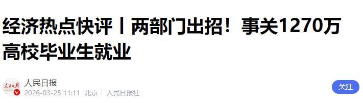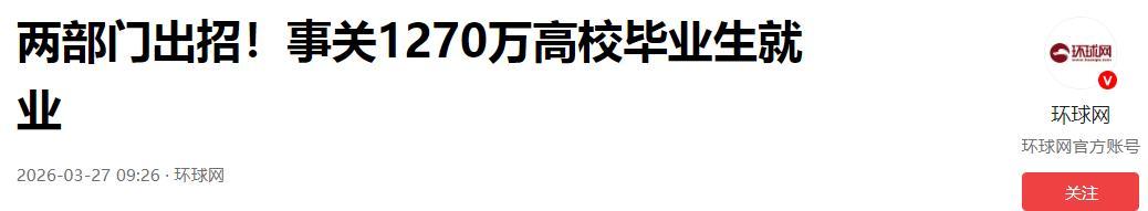 部門出招!事關1270萬高校畢業生就業.2026-03-27 09:26環球網.