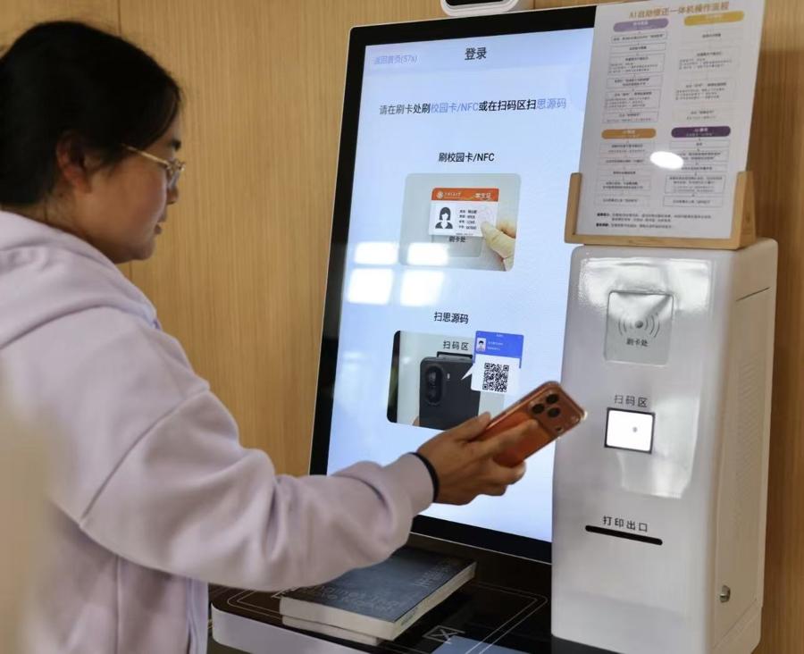 上海交大圖書館的AI紙電一體借還機。 本報記者 袁婧攝