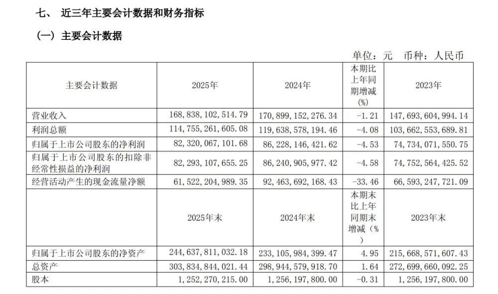 4月16日晚,貴州茅臺正式發佈2025年年度報告,實現營業總收入1720.54億元,歸母淨利潤823.20億元。