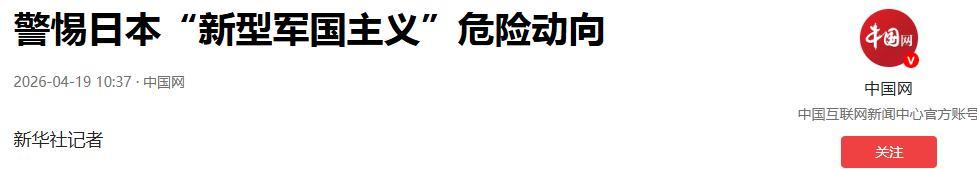 警惕日本“新型軍國主義”危險動向.2026-04-19 10:37·中國網.