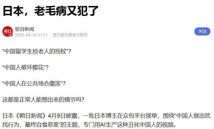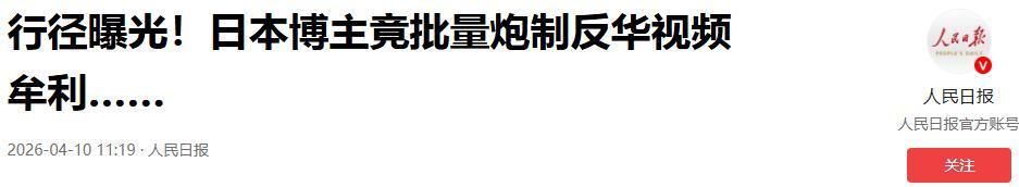 行徑曝光!日本博主竟批量炮製反華視頻牟利……2026-04-10 11:19·人民日報.