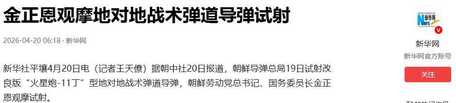 金正恩觀摩地對地戰術彈道導彈試射.2026-04-20 06:18·新華網.