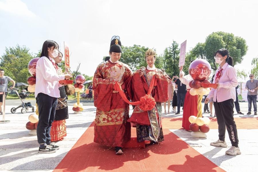對於即將步入婚姻殿堂的新人,七寶也備好了一份專屬浪漫。閔行區婚姻登記中心同步推出“尋找花神·緣來是你”主題活動。4月25日至5月30日,在閔行領證的新人可解鎖花神加冕集體頒證、國風旅拍、甜蜜福袋、集市暢玩、婚慶專屬優惠、免費婚育健康諮詢等六大福利。其中,甜蜜福袋內含“9.9元敲願鍾+免費湯糰”組合券,將古鎮的祝福直接送到新人手中。