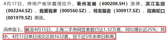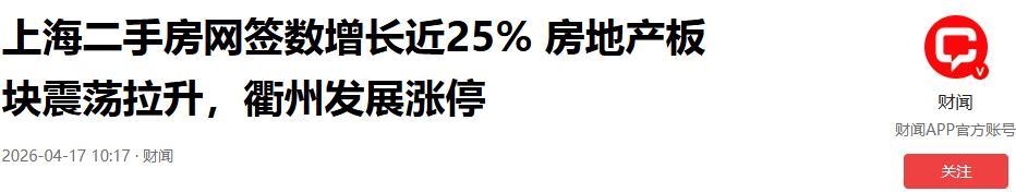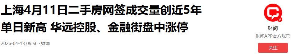 上海4月11日二手房網籤成交量創近5年單日新高 華遠控股、金融街盤中漲停,2026-04-13 09:56·財聞.