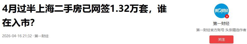 4月過半上海二手房已網籤1.32萬套,誰在入市?.2026-04-16 21:32·第一財經.