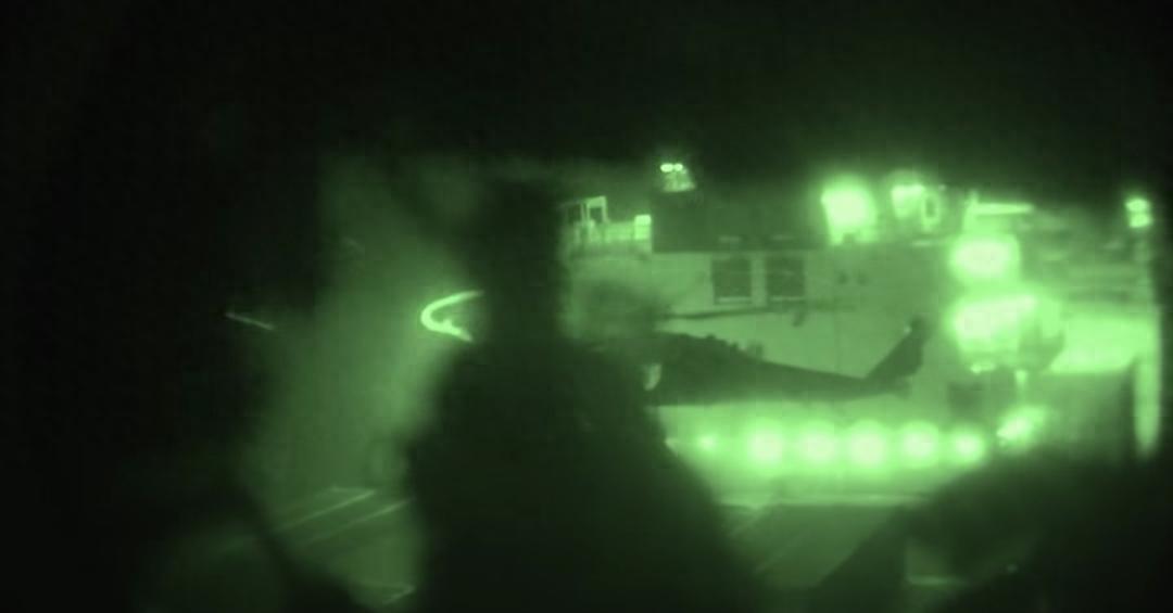 美軍發佈視頻稱,美軍士兵索降至伊朗貨輪上