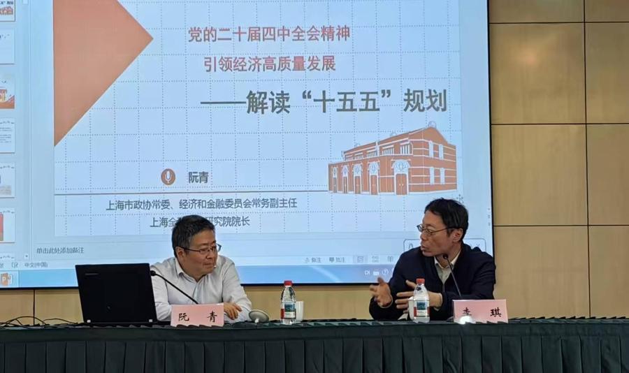 阮青的輔導報告立足黨的二十屆四中全會精神與上海發展實際,系統闡釋“十五五”時期我國及上海經濟社會發展的時代背景、戰略定位、目標任務與實踐路徑。“十五五”時期是我國基本實現社會主義現代化取得決定性進展的關鍵階段,也是上海乘勢而上、全面發力、攻堅突破的重要窗口期。上海必須胸懷“國之大者”,堅持“四個放在”,錨定建設“五個中心”、強化“四大功能”核心任務,在推進中國式現代化中當好龍頭、做好示範。阮青深入分析國內外發展環境,強調要堅持以科技創新引領新質生產力發展,做強集成電路、生物醫藥、人工智能三大先導產業,打造智能網聯新能源汽車、先進材料、時尚消費品等六大新興支柱產業,前瞻佈局量子科技、腦機接口、6G、可控核聚變、合成生物等未來產業新賽道,以場景開放帶動技術突破、產業培育、制度創新。同時,着力擴大內需、完善市場經濟體制、擴大高水平開放、促進共同富裕,推動經濟實現質的有效提升和量的合理增長。