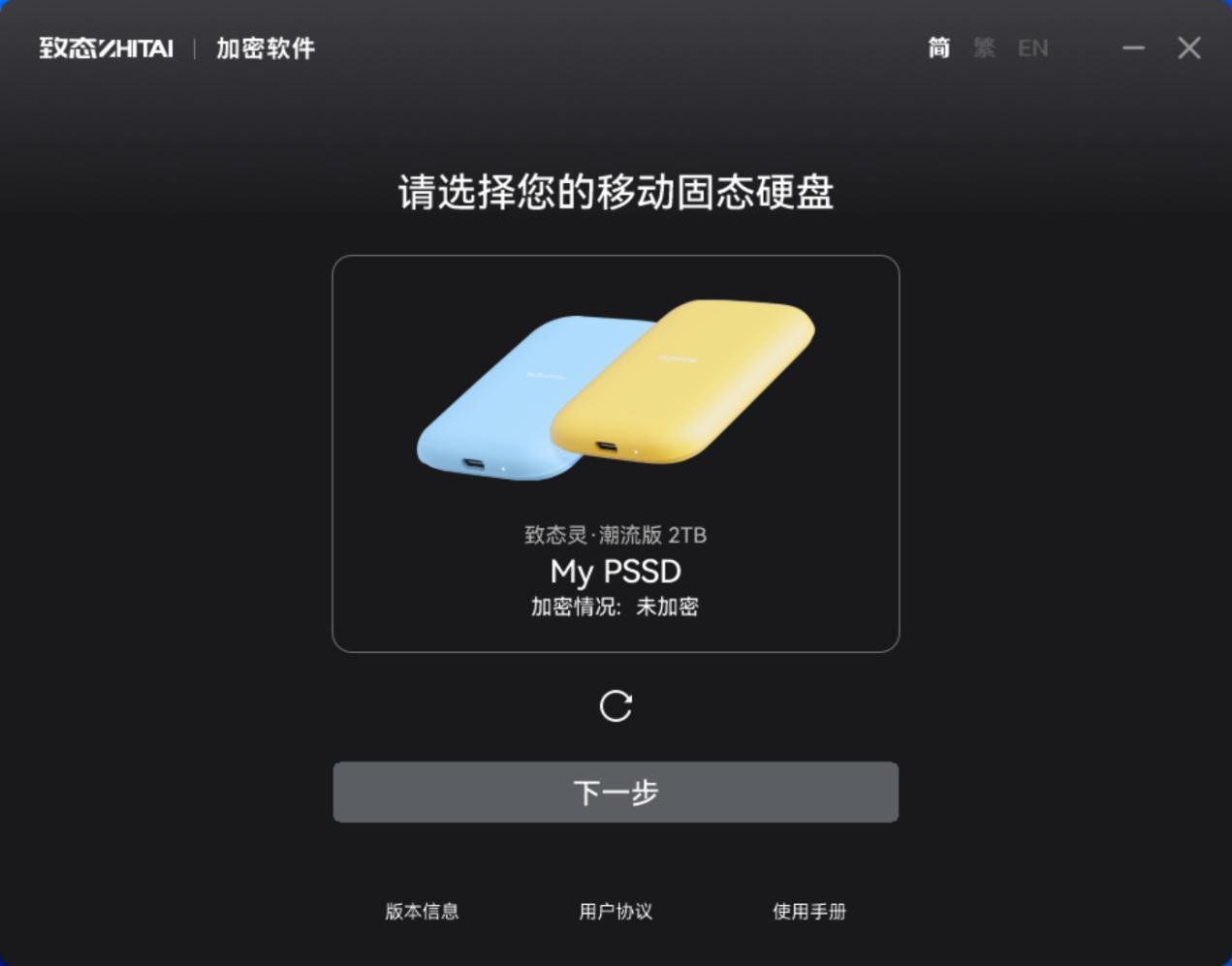 同時它也提供了致態加密軟件的快捷啓動。致態加密軟件設計非常純粹,主要是加密移動固態硬盤,保證數據安全。