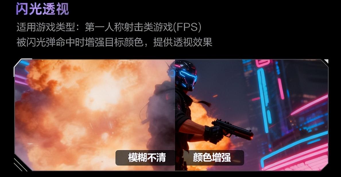在 FPS 遊戲中,AGON愛攻 的 AI 技術構建起玩家的視野護城河。面對敵人藏於複雜場景的痛點,AI能進行像素級目標分析,抓取人物輪廓、運動軌跡甚至武器反光細節,高亮標註目標,整個過程十分迅捷;而針對閃光彈致盲這一致命問題,AGON 愛攻的閃光透視可在拖閃瞬間讓畫面清晰,讓視野恢復時間大大提前,爲反擊創造關鍵窗口。