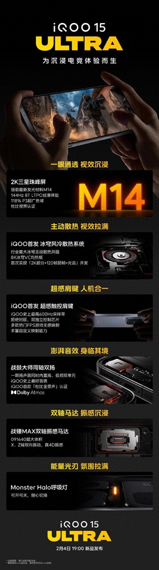 iQOO 15 Ultra全新預熱:主打沉浸電競體驗,發佈會定檔2月4日
