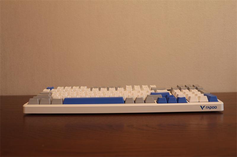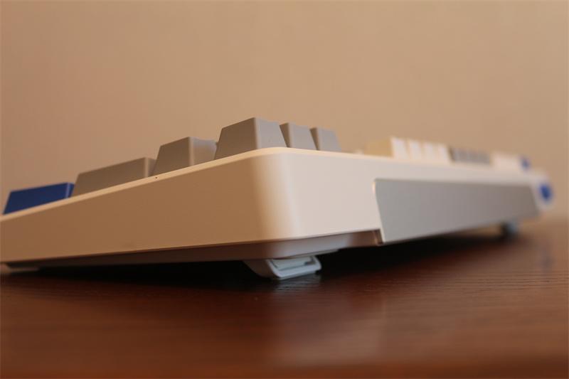 鍵盤前段18mm,底部採用三段式腳撐與硅膠防滑墊,提供6°/8°/10°三種傾斜角度,適應不同使用習慣。
