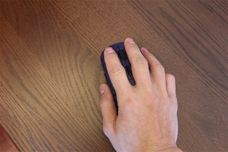 側腰深度優化後的收腰弧度,讓大拇指和小拇指自然卡位,滑動時穩定性顯著提升,即使在高強度操作中也能保持穩定軌跡。